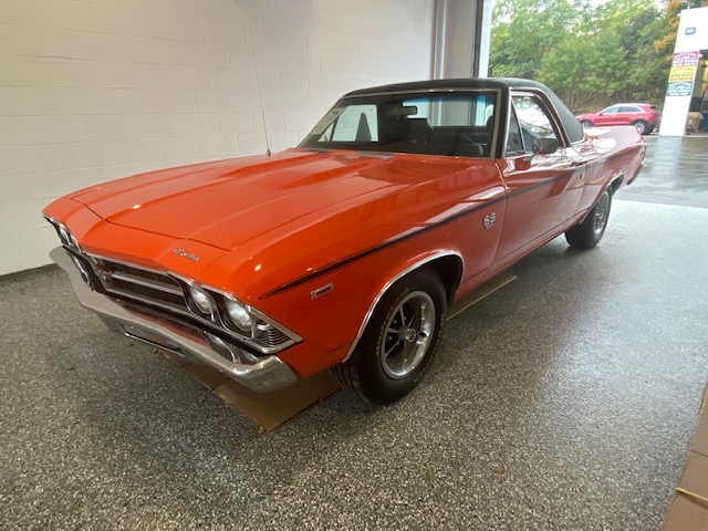 Stock number: P307 VIN: 136809B411757, Real 1969 Chevrolet El Camino SS with original build sheet. Rebuilt 396/350 HP. Holly Carb. Rebuilt turbo 400 transmission. 12 bolt rear end on a 2 1/2 year nut/bolt restoration. Includes new air shocks, gas tank, dual exhaust, new battery, brake caliper lines, booster, carpet. New BFG tires on date coded original rims. Original T-3 headlights. New vinyl top. This is a beautiful car!