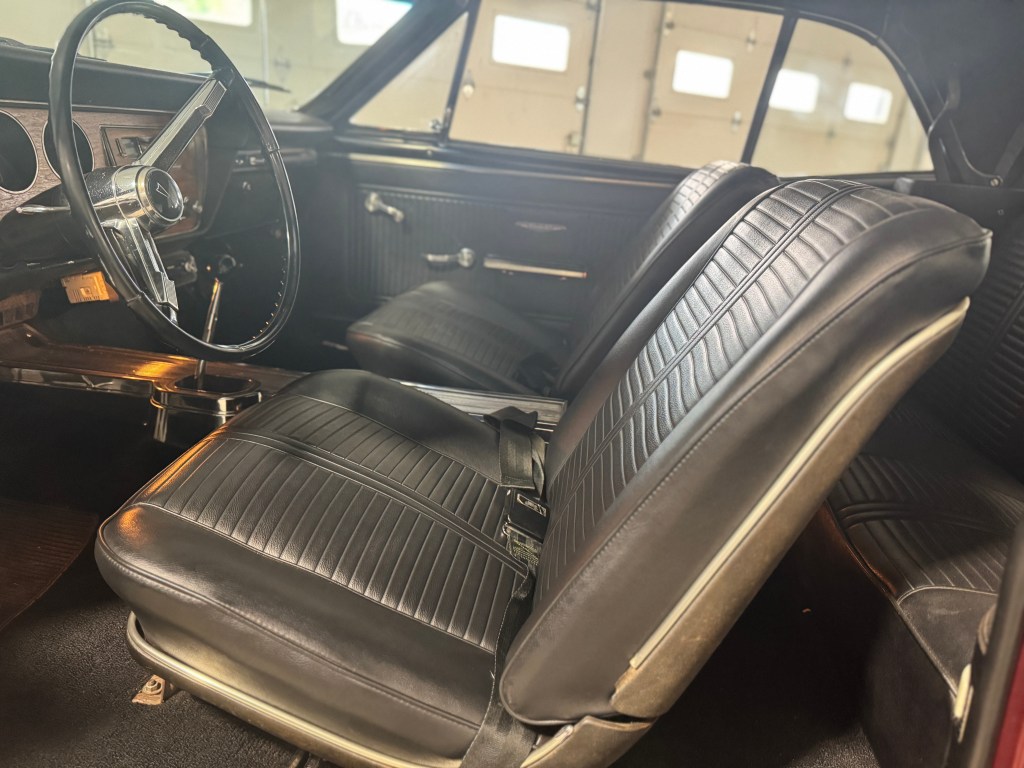 This is a real-deal 1966 Pontiac GTO Convertible, 4 speed, 389 V8 with matching numbers, power steering & brakes backed by the authentic 242 VIN prefix, finished in striking Marlboro red exterior & black interior & coordinating black convertible top.