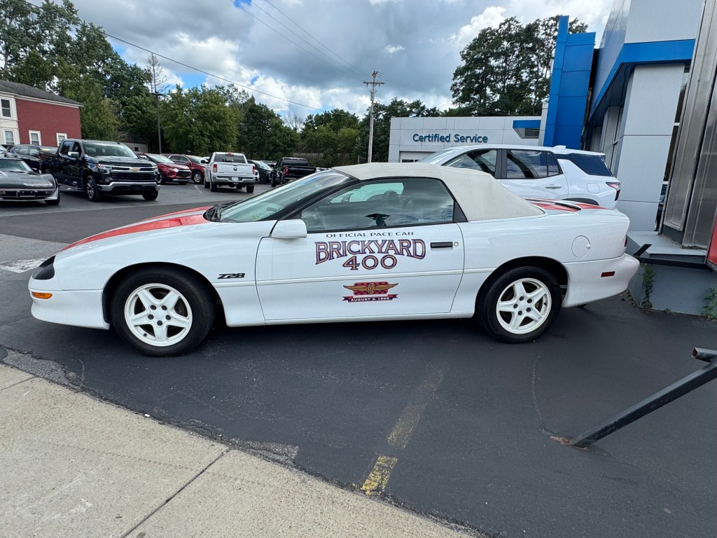 Stock number: C1822, VIN: 2G1FP32G4W2151988, Convertible Brickyard Pace Car, 1 of 50 made, Clean Carfax, LS1 5.7L V8 engine, Automatic, White with matching white convertible top, white bucket seats, cold air induction hood, rear spoiler, A/C Power Convertible top, ASR PS PB PW PL 4 wheel disc brakes, silver 5 spoke Alloy wheels, tinted glass, AM/FM/CD audio, cruise, odometer reads 6,367 miles. Also comes with jacket, hat and tickets from the race